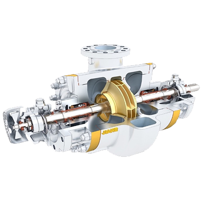 JHBB/JHBD泵(BB2)為兩級(jí)、徑向剖分兩端支承離心泵。符合API610-11th標(biāo)準(zhǔn)。JHBB為首級(jí)單吸,JHBD為首級(jí)雙吸。進(jìn)出口法蘭尺寸滿足ANSI或ISO標(biāo)準(zhǔn)。密封腔的設(shè)計(jì)符合ISO21...